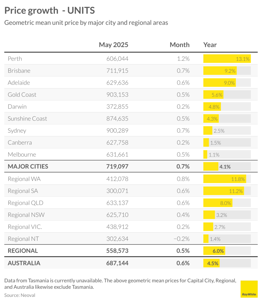 - Perth units are up 1% annually